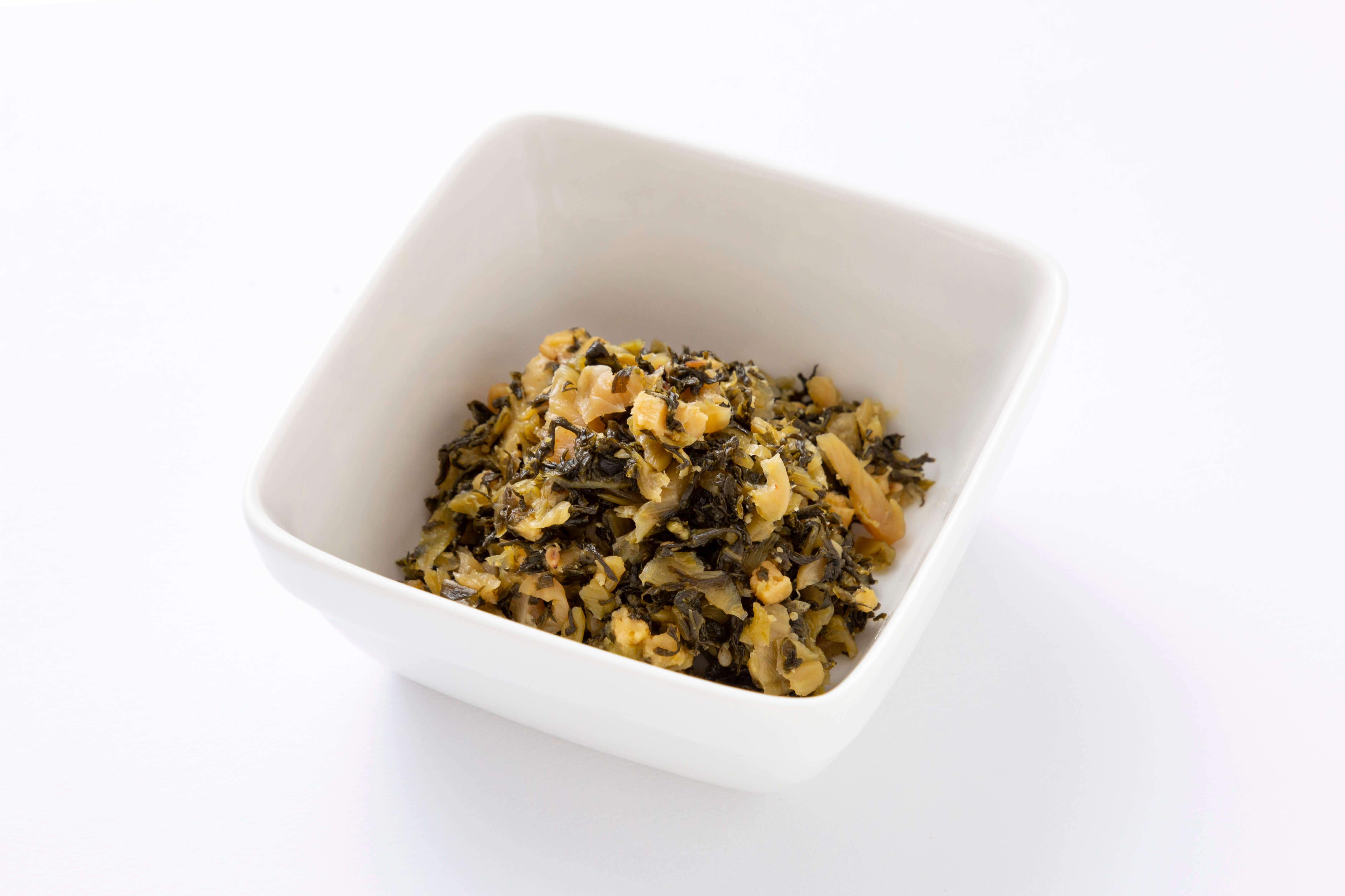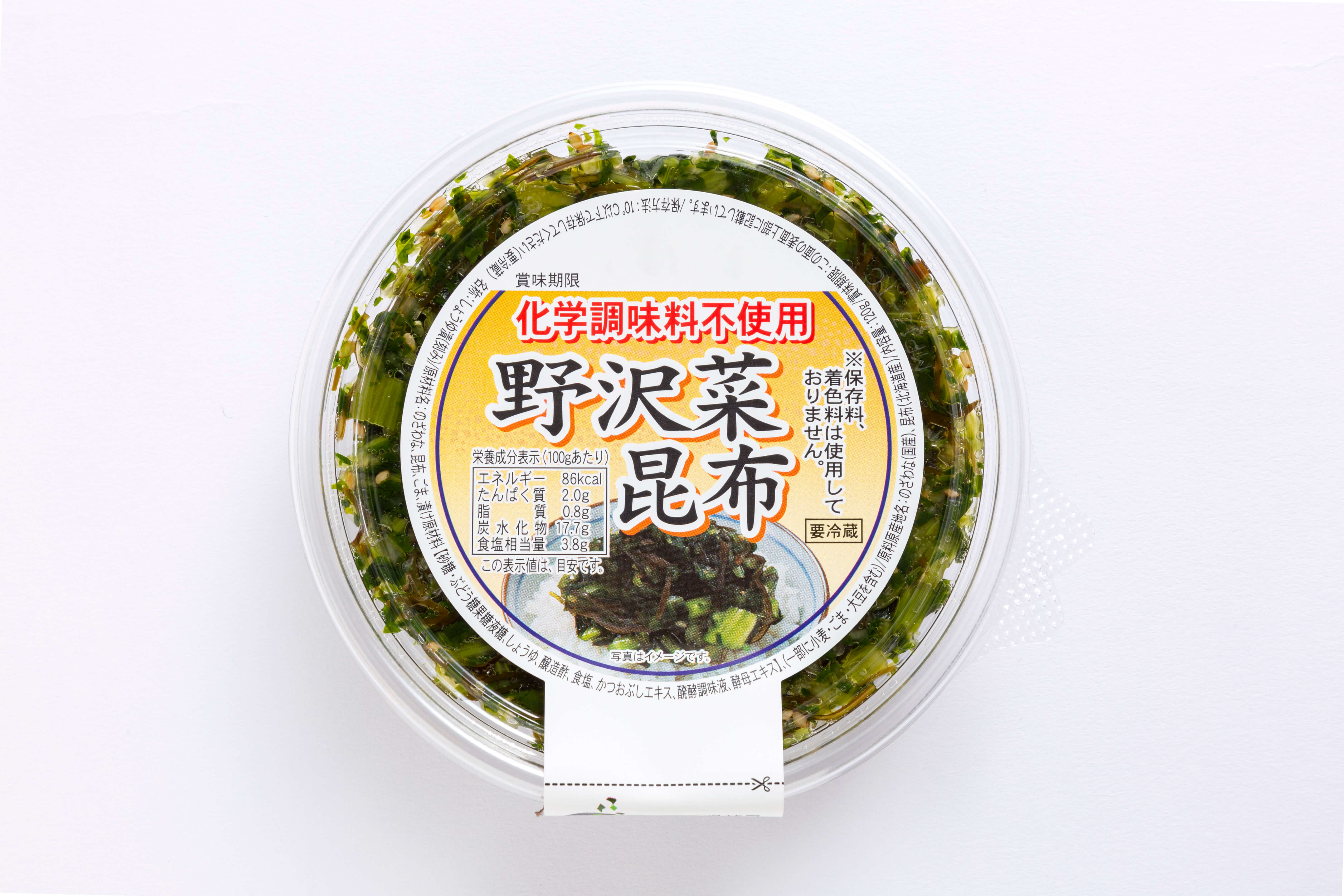 国産野沢菜を細かく刻み、北海道産昆布を加えて食べやすく仕上げました。野沢菜のシャキシャキとした食感と独特のうま味が、ご飯はもちろん豆腐やそうめんにもよく合います。