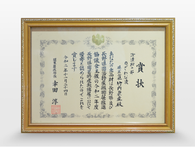 当社の定番商品である「野沢菜漬」が、浅漬け部門で関東農政局長賞を受賞しました。