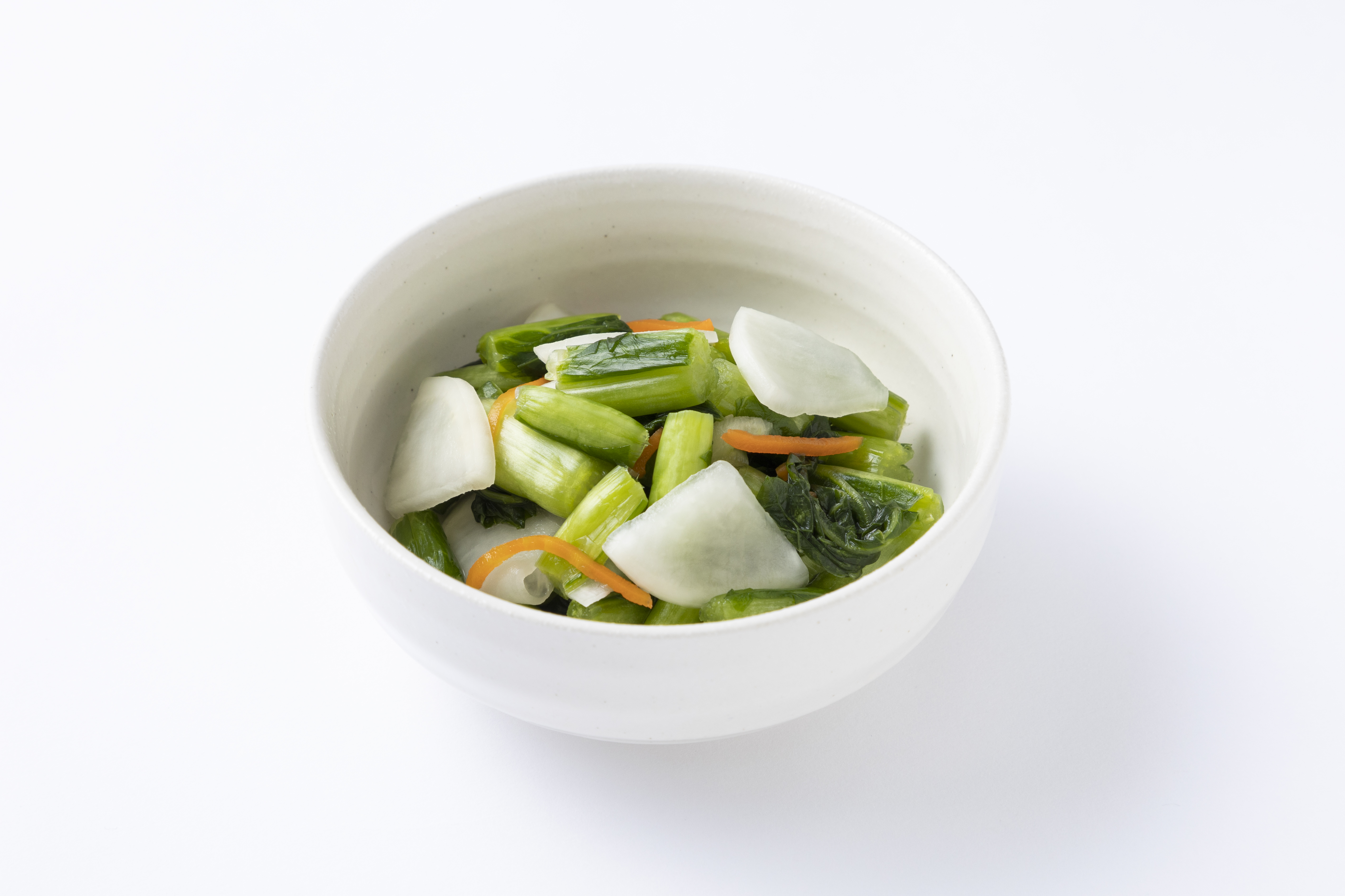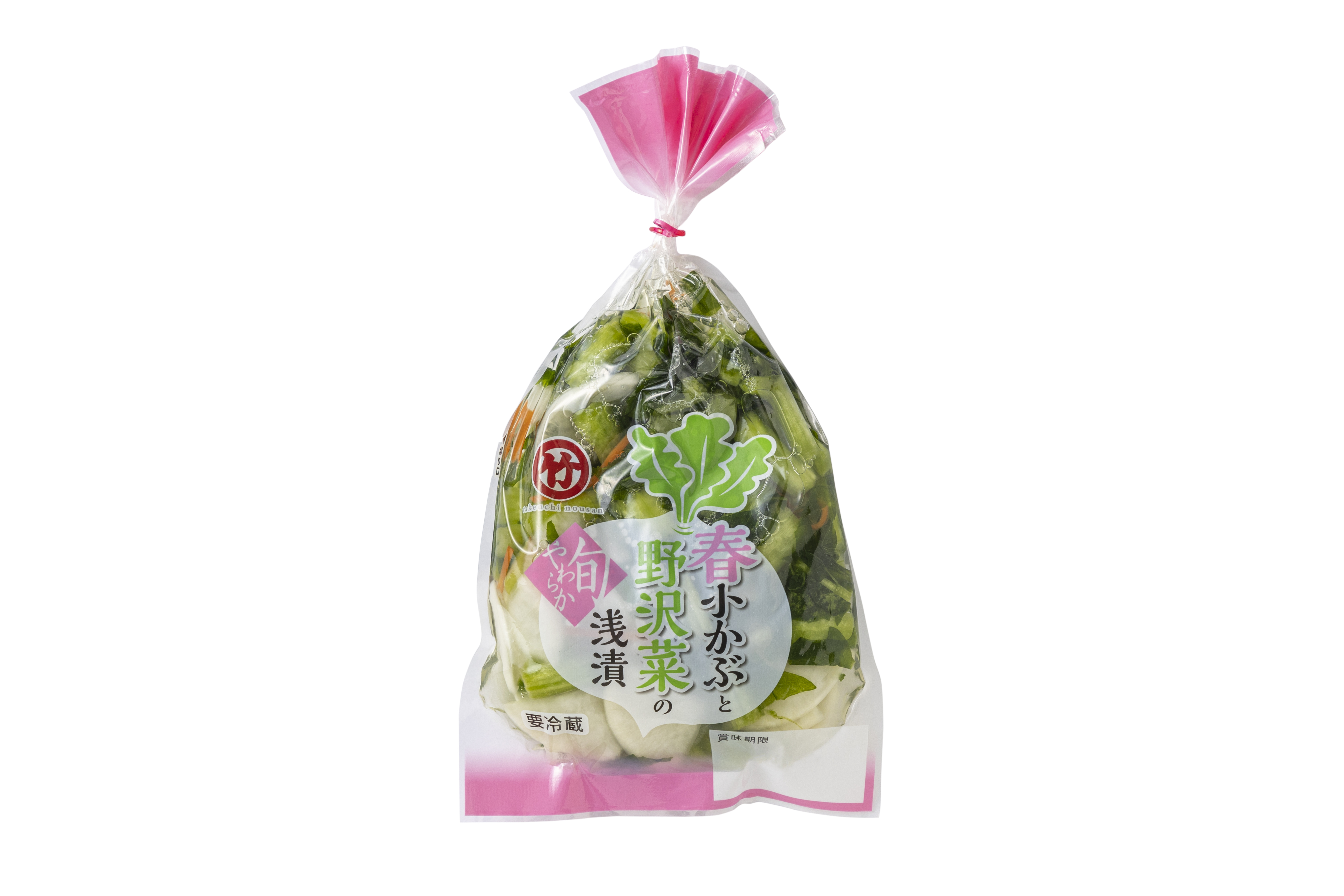 女性社員の意見からつくった春に食べたい、やさしい味付けの浅漬。やわらかな旬の春小かぶと鮮度の良い野沢菜をどうぞ。