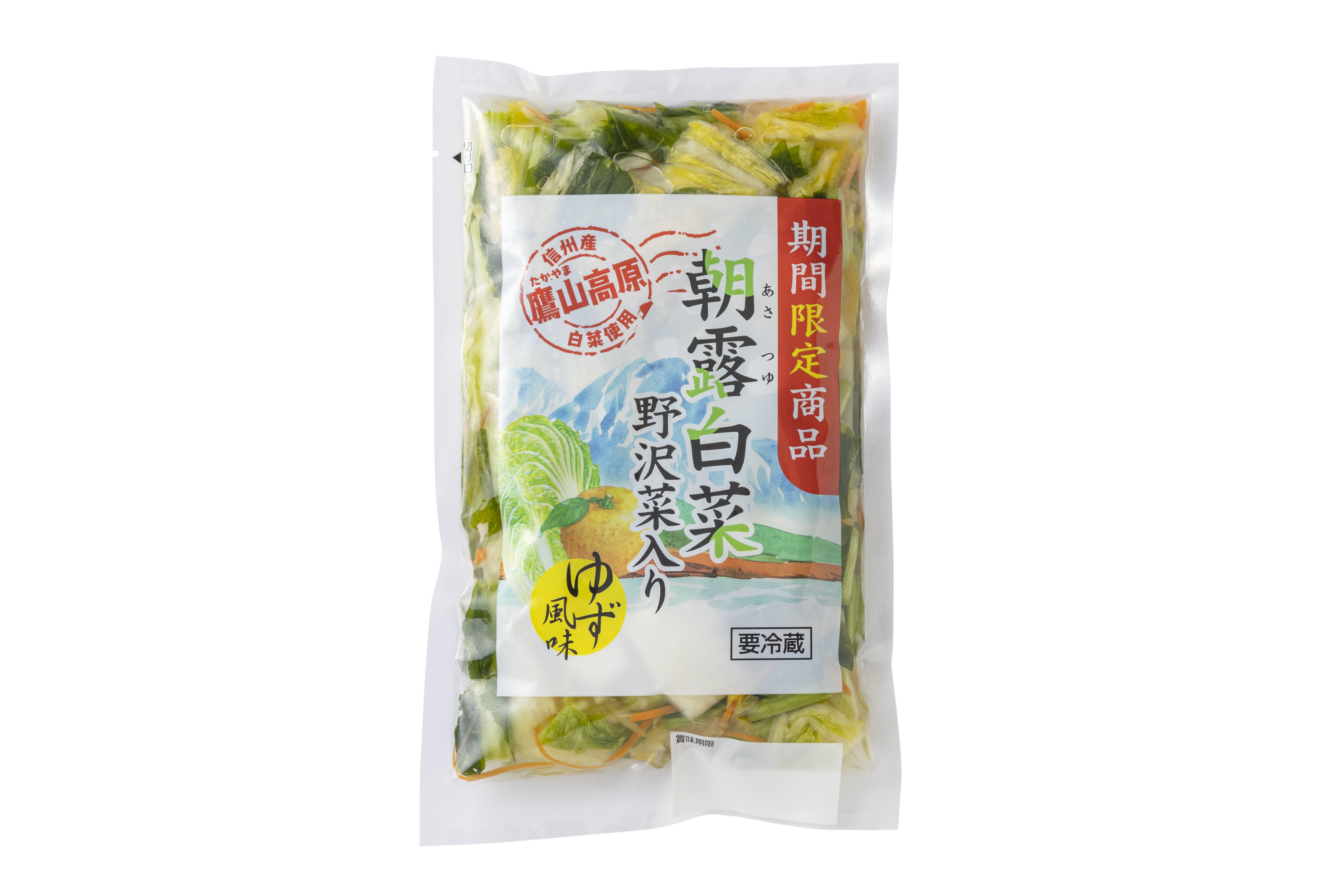 彩りも鮮やかな野沢菜と人参をミックスし、高知県産のゆず皮を加えて味付けしました。