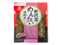 しゃきしゃきの野沢菜に食感のある「さしみこんにゃく」をミックスして、ヘルシーなサラダ感覚に仕上げてあります。「赤しそ」を配合したことで上品な味と香りがあり美味しく召し上がれます。