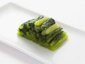 細かく刻んだ野沢菜に醤油、かつおエキス、煮干しエキス、ごま油を加え、仕上 げに唐辛子をぴりっと効かせた信州の昔ながらの野沢菜油炒めに、キューブ状 のFDチーズを加え、贅沢な逸品に仕上げています。